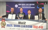 북구 클릭뉴스2025. 11.19[클릭뉴스]해남군이 2025 코리아 스포츠진흥대상에서 리더부문 대상을 수상하며 스포츠마케팅 역량을 인정받았다. 코리아 스포츠진흥대상은 대한민국 스포츠 진흥과 발전에 기여한 스포츠단체, 지방자치단체, 기업, 인물 등을 선정해 모범적 사례를 널리 알리기 위해 2019년 제정된 상으로, 올해로 7회째를 맞았다. 스포츠동아에서 주최하고, 문화체육관광부와 대한체육회, 국민체육진흥공단에서 후원하고 있다. 시상식은 18일 서울시 종로구 동아미디어센터에서 열렸다. 해남군은 리더부문 대상으로, 올해 전국단위 대회와 전지훈련팀 유치를 통…