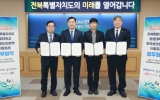 완주군 클릭뉴스2025. 03.07[클릭뉴스]전북특별자치도가 외국인 유학생의 취업 및 창업 생태계를 본격적으로 구축한다. 전북자치도는 7일 원광대학교, 한국생산성본부, ㈜참프레와 외국인 유학생의 취업 및 창업을 지원하는 협약을 체결했다. 이번 협약은 유학생들에게 지역 내 정착 기회를 제공하고, 기업과 연계해 안정적인 취·창업 환경을 조성하기 위해 마련됐다. 협약식에는 김관영 전북특별자치도지사, 박성태 원광대 총장, 박성중 한국생산성본부 회장, 김재윤 ㈜참프레 대표이사가 참석했다. 이번 협약은 전북자치도의 글로벌 인재 유치 전략과 연계해 외국인 유학생들이 지역 …