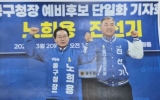 나주시 박기철기자2026. 03.20[클릭뉴스] 광주광역시 동구청장 선거를 앞두고 노희용·진선기 예비후보가 20일 단일화를 공식 선언했다. 양측은 이날 광주광역시의회 4층 브리핑룸에서 공동 기자회견을 열고 "동구의 재도약과 새로운 10년을 위해 후보 단일화에 합의했다"고 밝혔다. 두 예비후보는 동구의 미래를 위해 뜻을 모으기로 결단했다"며"이번 단일화는 개인의 선택이 아니라동구를 위한 시대적 요구이며, 동구민의 간절한 바람에 대한 응답이다"고 밝혔다. 이에 두 예비후보는 지난 8년간 동구 행정이 뚜렷한 비전 없이 정체돼 왔고, 행정력 부족에서 비롯된 …