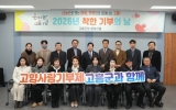 고흥군 클릭뉴스2026. 02.02[클릭뉴스]고흥군은 지난 30일 군청 팔영산홀에서 2026년 첫 ‘착한 기부의 날’ 행사를 열고, 지역사회 나눔 문화 확산을 위한 뜻깊은 자리를 마련했다. 이번 행사에는 고향사랑기부, 사회복지공동모금, 교육발전기금, 출산가정축복꾸러미 후원금 등 4개 분야에서 9개 팀, 15명의 기부자가 참여해 총 2천여만 원을 기탁하며 새해 첫 따뜻한 나눔을 실천했다. 행사는 개회에 이어 기부자 소개, 군수 인사말, 환담, 기부금 기탁 및 기념촬영 순으로 진행됐으며, 기부자들의 소중한 뜻을 함께 나누는 시간으로 채워졌다. 공영민 군수는 인사말…