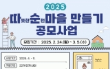 순천시 클릭뉴스2025. 02.20[클릭뉴스]순천시는 오는 24일부터 3월 5일까지 10일간 ‘2025년 따순마을 만들기 공모사업’ 참여공동체를 접수한다고 밝혔다. 이번 공모사업은 주민들이 직접 마을 문제를 발굴하고 해결하는 과정을 통해 공동체 의식을 함양하고 나아가 지역사회 발전에 기여할 수 있도록 지원하는 취지의 사업으로 2017년부터 9년째 이어오고 있다. 특히, 올해부터는 지원체계를 만남·도전·성장 세 단계로 확대하여, 각 단계별로 공동체의 형성-정착-확산으로 나아가는 맞춤형 지원을 강화했다. 공모 단계는 ▲‘1단계(만남)’ 주민모임 형성 지원 ▲ ‘2…