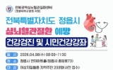 정읍시 클릭뉴스2026. 03.20[클릭뉴스] 정읍시 보건소가 지역 내 심뇌혈관질환 고위험군의 조기 발견과 체계적인 건강 관리를 돕기 위해 오는 27일까지 ‘심뇌혈관질환 예방 건강검진 및 시민건강강좌’ 참여자 200명을 선착순으로 모집한다. 전북권역심뇌혈관질환센터와 국민건강보험공단, 정읍아산병원, 한국심장재단 등 4개 전문 기관이 협력해 추진하는 이번 사업은 중증 질환으로 발전할 수 있는 심뇌혈관질환 고위험군을 선제적으로 찾아내고 맞춤형 관리를 지원하기 위해 마련됐다. 모집 대상은 정읍시에 거주하는 시민 가운데 이상지질혈증을 앓고 있거나, 국민건강보험공단으로부터…
