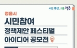 정읍시 클릭뉴스2025. 02.19[클릭뉴스]정읍시가 시민이 직접 참여하고 공감할 수 있는 정책 발굴을 위해 ‘시민 정책제안 공모전’을 개최한다. 이번 공모전은 시민 의견을 시정 운영에 적극 반영하고 주민 생활 편익을 높이기 위한 다양한 정책을 발굴하는 것을 목표로 한다. 공모 기간은 3월 18일까지이며 시민이라면 누구나 참여 가능하다. 1인당 최대 2건의 정책을 제안할 수 있지만, 시상은 1인 1건으로 제한된다. 채택된 제안은 정읍시의 정책 수립과 예산 편성 절차를 거쳐 실제 시정에 반영될 예정이다. 공모 주제는 ▲생활 속 개선이 필요한 정책 ▲생활인…