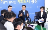 광주광역시 클릭뉴스2025. 02.18[클릭뉴스]광주광역시와 광주정책연구회는 18일 시청 중회의실에서 ‘트럼프 2기의 글로벌 경제 전망과 대응’을 주제로 제10회 정책포럼을 개최했다. 이날 포럼에는 강기정 시장를 비롯한 광주시 공직자, 공공기관 임직원 등 100여 명이 참석했다. 강연자로 나선 김영익 내일희망경제연구소 소장은 트럼프 2기 행정부 출범 이후 세계 경제와 환율, 우리나라 경제에 대한 전망, 광주시의 대응 방향에 대해 발표했다. 김 소장은 “트럼프의 경제정책 방향은 감세와 규제 완화로 기업 투자를 촉진하고 통화 완화와 저금리를 통해 물가 안정을 유도하고…