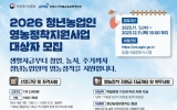 순천시 클릭뉴스2025. 11.19[클릭뉴스]순천시는 청년농업인의 안정적인 지역 정착과 미래 농업인력 확보를 위해 ‘2026년 청년농업인 영농정착 지원사업’ 1차 대상자를 오는 12월 11일까지 모집한다고 밝혔다. 지원 대상은 만 18세부터 39세(1985~2008년생)까지의 청년 중 농업경영체 경영주로 등록한 영농경력 3년 이하 농업인이며, 영농을 새롭게 시작하려는 예비 청년농업인도 신청 가능하다. 또한, 신청자 세대의 건강보험료가 기준 중위소득 140% 이하일 경우에 한해 지원 자격이 주어진다. 선정된 청년농업인에게는 영농 초기의 경제적 부담을 완화하기 위…
