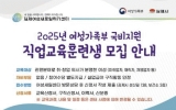 김제시 클릭뉴스2025. 02.17[클릭뉴스]김제시여성새로일하기센터가 관련분야의 취·창업 의사가 분명한 여성을 대상으로 여성가족부 국비 지원 무료 직업교육훈련을 제공하며 호응을 얻고 있다. 여성새로일하기센터는 여성가족부 국비지원 무료 직업교육으로 올해 총 5개 과정을 지원할 예정이다. 교육은 오는 3월 21일부터 실시하는 회계사무원 양성과정을 시작으로 4월 1일 실버케어 사회복지 실무자 양성과정, 4월 7일 한식·단체급식 조리사 양성과정, 4월 14일 반려동물 전문가 양성과정, 9월 10일 노인돌봄 생활지원사 양성과정을 순차적으로 교육 운영할 계획이며, 각 과정…