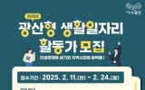 전라북도 클릭뉴스2025. 02.16[클릭뉴스]광주 광산구가 지속 가능한 일자리 생태계 조성과 민생경제 회복을 도모하기 위한 일자리 사업 참여자를 모집한다. 모집 분야는 △생활민원 해결 △마을 일손 도움 △공공시설 운영지원 △공공사업 인력 지원으로 구성됐다. 광산형 생활일자리 활동은 생활민원 해결, 공공사업 인력 지원 등 총 37개 사업에 참여하며 광산구에 거주하는 미취업자를 대상으로 3월부터 6월까지 4개월 동안 활동할 150명을 모집한다. 참여 수당 일부는 온누리상품권으로 지급한다. 신청 방법은 24일까지 광산구청 각 일자리 담당 부서에 방문해 접수하면 된다…