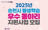 신안군 클릭뉴스2025. 02.14[클릭뉴스]순천시가 오는 20일부터 24일까지 ‘2025년 평생학습 우수동아리 지원사업’에 참여할 동아리를 모집한다고 밝혔다. 평생학습 동아리는 학습을 주된 목적으로 참여하는 모임으로, 정기적인 학습과 실천을 통해 개인과 공동체의 성장을 도모하는 자발적인 학습 공동체이다. 신청 대상은 공고일 기준 순천시 평생교육 포털에 등록된 학습 동아리이다. 신청 동아리는 7명 이상의 구성원으로, 그 중 80% 이상이 순천시민이어야 하며 월 2회 이상 정기적인 활동을 해야 한다. 다만, 친목과 상호 교류 목적의 단순 소모임이나 영리를…