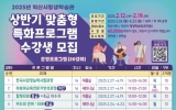 종합 박기철기자2025. 02.12[클릭뉴스]익산시 평생학습관은 오는 19일까지 상반기 맞춤형 특화프로그램 수강생을 모집한다고 12일 밝혔다. 상반기 프로그램은 2월 24일부터 6월 23일까지 16주간 운영된다. 시민 참여를 확대하고 성장할 수 있는 기회를 제공하고자 △직업능력 △문화예술 △인문교양 △시민교육 등 4개 분야 20개 프로그램을 준비했다. 프로그램은 직업능력 분야에서 '아로마교육전문가 양성과정' 등 2개 강좌와 문화예술 분야에서 '힐링타로', '바람의 선율 팬플룻' 등 12개 강좌가 운영된다. 인문교양 분야는 '나의 이야기, 나의 수필' …