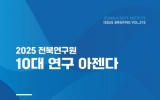 [클릭뉴스]전북자치도 백년대계를 설계하는 씽크탱크 전북연구원(원장 이남호)이 민선 8기 비전과 목표 달성을 뒷받침할 2025년 10대 연구 아젠다를 선정했다. 전북연구원은 12일 이슈브리핑(315호)을 통해 ‘함께 혁신, 함께 성공, 새로운 전북’의 비전과 ▲도민경제 부흥 ▲농생명산업 수도 ▲문화·체육·관광거점 조성 ▲새만금도약·균형발전 ▲도민행복·희망교육 등 도정 5대 목표를 뒷받침하기 위해 연구원 역량을 집중하기 위한 10대 연구아젠다를 선정했다고 발표했다. 10대 연구 아젠다는 △백년대계 미래산업 성장엔진 점화 △실감 민생…