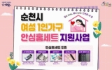 완주군 클릭뉴스2025. 02.10[클릭뉴스]순천시는 2월 10일부터 3월 11일까지 ‘여성 1인가구 및 한부모가정 안심홈세트 지원사업’ 대상자를 모집한다고 밝혔다. 이번 사업은 최근 증가하고 있는 여성 대상 범죄를 사전 예방하고, 여성의 안전한 일상을 돕기 위해 추진된다. 시는 여성 1인가구 및 한부모가정 200가구에 ▲LED안전호루라기 ▲창문잠금장치 ▲택배송장지우개 ▲호신용스프레이 ▲도어락지문방지필름 등 안심홈세트 물품 5종을 지원한다. 신청 자격은 순천시에 주민등록을 둔 65세미만 ▲여성 1인가구 ▲한부모가정이다. 여성범죄피해자, 장애인, 기초생활수급자…