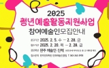 광주광역시 클릭뉴스2025. 02.07[클릭뉴스] (재)완주문화재단이 완주예술인의 창작활동을 지원하는 ‘2025 전문예술창작지원사업’과 ‘2025 청년예술활동지원사업’의 참여예술인 및 단체를 모집한다. 본 사업은 완주지역에서 활발히 활동하는 예술인의 창작역량을 강화하고, 지속 가능한 창작환경을 조성하기위해 마련되었다. 모집 대상은 문학, 시각, 공연, 전통, 다원예술 등 다양한 예술 분야에서 활동하는 개인 예술가 및 예술단체이며, 청년예술활동지원사업의 경우 만 39세 이하의 청년예술인이 지원할 수 있다. 선정된 개인 및 단체는 창작활동에 필요한 지원금을 받을…
