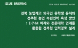 전라북도 클릭뉴스2026. 03.19[클릭뉴스] 전북연구원은 19일 농업계고 특성화고·마이스터고 외국인 유학생을 육성형 전문기술인력(E-7-M) 비자와 연계한 새로운 인력 양성 모델인 ‘전북형 농생명 숙련인력 패스웨이’를 제안했다. 이번 이슈브리핑에서 전북연구원은 ‘농업계고 유학생(D-4-3)-전북 농생명 특성화 전문대학(D-2)-전북 농생명기업 취업(E-7-M)-인구감소지역 정주(F-2)’로 이어지는 4단계 경로를 제시했다. 또한, 기존 단기·단순노동 중심 외국인력 정책을, 전북에 장기 정착하는 농업 숙련인력을 체계적으로 육성하는 전략으로 전환해야 한다고 강…