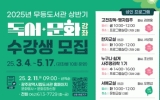 광주광역시 클릭뉴스2025. 02.05[클릭뉴스]광주광역시립도서관(무등‧사직‧산수)은 오는 3월부터 5월까지 시민을 대상으로 20개의 독서문화 강좌를 운영한다. 무등도서관은 성인을 대상으로 ▲고전강독-맹자집주 ▲한자교실 ▲누구나 쉽게 사주명리학 ▲서예교실 ▲민화교실 ▲한국화교실 ▲펜 하나로 시작하는 일상드로잉 ▲팝송으로 입문하는 영어회화 ▲통기타 여행 등 9개 강좌를 운영한다. 사직도서관은 성인을 대상으로 ▲내 삶이 시가 되는 창작교실 ▲스마트 시니어교실 ▲시민한문교실 ▲양림을 그리다 ▲감탄 캘리그라피 5개 강좌를, 어린이를 대상으로 ▲인물로 만나는 우리 역사 등 …