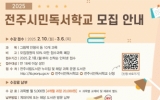 전주시 클릭뉴스2025. 02.05[클릭뉴스]전주시가 올해도 시민들의 역량 개발과 자아실현을 돕기 위해 다양한 독서교육 기회를 제공하는 ‘전주시민독서학교’를 운영키로 했다. 전주시립도서관은 오는 10일부터 3월 6일까지 ‘2025 전주시민독서학교’에 참여할 수강생 200여 명을 선착순 모집한다. 올해로 28년째를 맞는 전주시민독서학교는 다양한 강좌를 통해 시민들의 문화적 욕구를 충족시켜왔으며, 해를 거듭할수록 유아 교육과 책 놀이 등 다양한 분야의 시민 자원활동가를 양성하는 교육의 장으로서의 역할도 담당해오고 있다. 올해 시민독서학교는 오는 3월 11일부터 7…