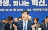 진안군 클릭뉴스2025. 02.03[클릭뉴스]전북특별자치도는 3일 전북특별자치도청 대회의실에서 팀장급 이상 본청 간부와 직속기관·사업소장 및 출연기관장 등 약 400여 명이 참석한 가운데 민선8기 첫 번째 확대간부회의를 개최했다. 2018년 이후 7년만에 개최된 이번 회의는 도정 주요 정책목표 달성을 위한 청원 간 정책 공감대 형성과 과장 중심의 책임행정 실현이라는 취지 아래 ▲2025년 메가 비전 프로젝트 ▲2025년 도정 핵심 프로젝트 ▲민생 안정 프로젝트와 ▲2036년 하계올림픽 유치 프로젝트 등 도정 주요 현안을 담당 부서장들이 직접 발표하는 방식으로 진행…