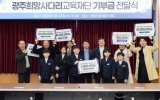 광주광역시 클릭뉴스2025. 01.22[클릭뉴스]설 명절을 앞두고 광주희망사다리교육재단에 지역사회의 따뜻한 기부 행렬이 이어지고 있다. 광주시교육청은 22일 중회의실에서 ‘광주희망사다리교육재단 기부금 전달식’을 개최했다. 전달식에는 이정선 교육감을 비롯해 김성진 광주희망사다리교육재단 이사장, 광주문화신협 김남석 상임이사, ㈜화인데코 이상철 대표, ㈜진양에스엔지 채성열 대표, 와이마트 법성포점 김찬혁 대표, 광주 북구 마을자치도시재생센터 김숙희 센터장, 광주교대부설초 김하준·박채빈·박승일·이도겸·이성준 학생 등이 참석했다. 이날 전달된 기부금은 광주문화신협 3천6…