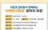 김제시 클릭뉴스2025. 01.08[클릭뉴스]김제시가 8일부터 오는 24일까지‘시민과 공무원이 함께하는 시책연구모임’에 함께할 시민을 공개 모집한다. 오는 3월부터 9월까지 진행되는 이번 시책연구모임은 시책 실현 가능성에 중점을 두고, 시민들이 발굴한 연구과제를 공무원과 함께 수행해 결과를 도출하는 방향으로 진행되며, 시민의 삶과 밀접한 주제를 발굴하여 실효성 있는 시책이 개발될 것으로 기대된다. 연구분야는 ▲성장도시 기반조성, ▲인구성장 초석마련, ▲농업수도 위상확립, ▲민생복지 경제활력, ▲세계축제 도시도약으로 민선8기 시정방침에 부합한 과제 중 자유주제다.…
