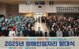 동구 클릭뉴스2025. 01.05[클릭뉴스]광주 동구는 최근 ‘다름이 아닌 공감으로’ 함께하는 장애인친화도시 조성 일환으로 ‘2025년 장애인일자리 발대식’을 개최했다고 밝혔다. 이날 발대식에는 장애인일자리사업 참여자 221명과 수행기관장, 배치기관장 등 300여 명이 참석했으며, 직장 예절교육과 인권·안전보건교육도 함께 진행됐다. 2025년 장애인일자리사업은 역대 최대 규모인 221명을 선발했다. 이들은 일반형 일자리 93명, 복지형 일자리 110명, 특화형 일자리 18명으로 구성됐으며, 동 행정복지센터, 복지관, 도서관 등 83개소에 배치되어 1년 동안…