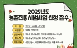 화순군 클릭뉴스2025. 01.03[클릭뉴스]화순군은 3일 “소득이 높은 부유농촌” 실현과 화순 농업경쟁력 강화를 위해 「2025년도 농촌진흥 시범사업 신청」을 2025년 2월 3일까지 신청받는다고 밝혔다. 이번 농촌진흥 시범사업은 5개 분야(역량개발, 농촌자원, 식량작물, 원예작물, 난산업화) 22개 사업이다. 주요사업으로는 ▲4-H회원 영농정착 시범 ▲신규농업인 현장실습교육 ▲농산물 가공상품 친환경 패키징 개발 시범 ▲향토음식 및 전통식문화 계승활동 지원 시범 ▲밭작물 정밀파종 및 시비기술 시범 ▲흑염소 개체관리 보정장치 구축 시범 ▲이상기상 대응 복숭아…