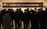 광주광역시 클릭뉴스2024. 12.30[클릭뉴스]장흥군은 30일 제주항공 여객기 참사 희생자를 애도하기 위한 합동분향소를 설치했다고 밝혔다. 군은 사고 즉시 대응책을 마련하기 위한 재난안전 대책회의를 개최하여 사고대응에 총력을 기울이고 있다. 특히 30일 오후 3시에 장흥군수를 비롯한 군민회장, 관내 기관·사회단체장 및 실과소장 등 100여 명은 헌화 및 참배 등 희생자에 대한 위로와 애도를 표하는 시간을 가졌다. 분향소는 장흥군민회관 1층 현관에 마련되어 있으며, 조문은 오전 7시부터 오후 8시까지 가능하다. 김성 군수는“제주항공 여객기 참사 희생자분들의 명복…