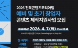 전라북도 클릭뉴스2026. 03.16[클릭뉴스](재)전북특별자치도 콘텐츠융합진흥원 전북콘텐츠코리아랩은 콘텐츠 분야 예비 창업자와 3년 이내 초기 창업기업의 경쟁력 강화를 위한 콘텐츠 제작지원사업 참여자를 모집한다. 전북콘텐츠코리아랩은 지역 기반의 지속 가능한 콘텐츠 창·제작 생태계 조성과 활성화를 위해 운영되고 있으며, 도내 콘텐츠 창작자와 초기 창업기업의 창작 활동 및 사업화를 지원하고 있다. 이번 제작지원사업은 통합 공고 형태로 진행되며, ▲ 예비 창업자 시제품 제작지원, ▲ 초기 창업기업 사업화 지원 등 두 개 분야로 구분해 추진한다. 창·제작자 시제품 …