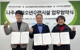 문화 클릭뉴스2026. 03.16[클릭뉴스]전남 나주시가 위탁 운영하는 청소년수련관과 청소년문화의집, 청소년상담복지센터, 학교밖청소년지원센터는 최근 업무협약을 체결하고 지역 청소년 지원체계 강화를 위해 상호 협력하기로 했다. 이번 협약은 지역 청소년의 건강한 성장 지원과 위기청소년 조기 발굴을 위한 협력 기반을 마련하기 위해 추진됐다. 협약을 체결한 각 기관은 위기청소년 발굴과 연계 지원을 비롯해 청소년 활동 활성화, 기관 간 협력체계 구축 등을 위해 적극 협력할 계획이다. 특히 기관 간 정보 공유와 실무 협의를 정례화하고 각 기관이 보유한 공간과 전문 인력…