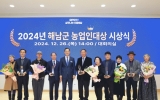 전라남도 클릭뉴스2024. 12.26[클릭뉴스]2024년 해남군 농업인대상에 황산면 이병연(52세)씨 등 5명이 선정됐다. 이병연씨는 고품질(친환경)쌀 부문에 선정됐으며, 원예특작 부문 문내면 김찬호(67세), 농산물유통·가공 부문 마산면 이웅(64세), 임업 부문 현산면 김건영(59세), 축산 부문 해남읍 윤기현(55세)씨가 수상의 영예를 안았다. 이병연씨는 2006년부터 친환경 농법으로 전환하여 11.5ha의 벼 전체 면적을 유기농으로 재배하고 있으며,‘용의 눈동자’자체 브랜드를 개발하는 등 전문적이고 선도적인 영농 실천으로 고품질 쌀 농업 발전에 노력하고 있…