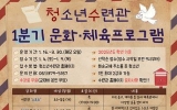 화순군 클릭뉴스2024. 12.23[클릭뉴스]화순군은 23일 화순군청소년수련관에서 2025년 1분기 문화·체육 프로그램 참가자 138명을 선착순 모집한다고 밝혔다. 이번 1분기 프로그램은 청소년들이 다양한 문화적 경험을 통해 창의력과 자신감을 키울 수 있는 기회를 마련하기 위하여 청소년수련관 이용자와 운영위원회 의견을 반영해 문화·체육·예술·요리 등 다양한 분야의 10개 강좌를 운영한다. 각 분야의 전문가들이 함께하는 강좌로 ▲이븐한 ‘스포츠’ ▲‘다트’ 플레이어 ▲우아핑 ‘발레 클래스’ ▲킹무브 ‘체스 게임’ ▲여기 ‘클라이밍’ 어때 ▲나는 토요일 ‘어쿠스…