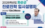 화순군 클릭뉴스2024. 12.23[클릭뉴스]화순군은 오는 28일 화순고등학교 시청각실 및 도서관에서 초·중·고 학생 학부모를 위한 ‘2026학년도 진로-진학 입시 설명회’를 개최한다고 밝혔다. 이번 행사는 2028년부터 크게 변화하는 대학 입시 제도에 효과적으로 대비하고, 학생과 학부모가 전략을 세우는 데 도움을 주기 위해 마련됐다. 특히 오후 2시부터는 종로학원 임성호 대표이사가 특별 강연자로 나서 새로운 입시 전략과 함께 진로·적성 탐색 방법을 제시할 예정이다. 임 대표는 다년간의 현장 경험을 토대로 변화하는 입시 환경에 맞춘 실질적인 조언과 정보를 …