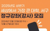 서구 클릭뉴스2024. 12.18[클릭뉴스]광주광역시 서구는 오는 27일까지 ‘세상에서 가장 큰 대학, 서구’2025년 상반기 정규강좌 강사를 모집한다. 서구의 평생학습 브랜드 사업인 세큰대는 주민의 지속 성장을 위해 근거리 생활권에서 교육받을 수 있는 동 캠퍼스 운영 및 특급배송 배달강좌 런투유 등 다양한 사업을 추진하고 있으며 전남대, 광주보건대, 조선이공대 등 지역대학과 연계․협력을 통해 전문성 있는 교육을 무료로 제공해 주민들의 큰 호응을 얻고 있다. 모집은 시민참여·인문사회·문화예술학과 총 3개 학과, 20개 강좌를 선정할 계획으로 교육 분야에 따라…