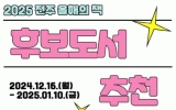 전주시 클릭뉴스2024. 12.17[클릭뉴스] 책의 도시 전주시가 2025년 새해 함께 읽을 ‘2025 전주 올해의 책’을 시민들의 손으로 뽑기로 했다. 전주시는 1년 동안 시민들과 함께 읽을 ‘2025 전주 올해의 책’ 후보도서를 오는 1월 10일까지 추천받는다고 17일 밝혔다. ‘전주 올해의 책’은 책으로 하나 되는 독서공동체 형성을 위해 지난 2019년부터 매년 전주를 대표하는 책을 시민과 함께 선정하고, 다양한 연계 프로그램을 진행하는 시민 독서 운동이다. 특히 2025 전주 올해의 책은 후보도서 추천부터 시민투표까지 모든 과정에 시민이 참여함으로…