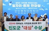 진도군 클릭뉴스2024. 12.16[클릭뉴스]진도군은 지난 13일, 전남도청 동부청사 이순신 강당에서 열린 2024년 일자리·경제 한마당 행사에 참석해 ‘2024 전라남도 지역경제 활성화 평가’에서 대상과 함께 1,700만 원의 시상금을 받았다. 전라남도 22개 시군에서 우수경제 시책의 발굴·확산을 통해 도민의 삶의 질 향상과 지역경제 활성화를 도모하기 위한 위 평가는 ▲물가 관리, ▲사회적경제 활성화, ▲소상공인 지원·육성, ▲전통시장 활성화 등 4개 분야에서 13개 지표를 평가해 선정했다. 그동안 진도군은 침체된 경제의 활성화를 위해 민생경제 회복과 일자리 …