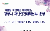 광양시 클릭뉴스2024. 12.11[클릭뉴스]광양시가 시민의 소중한 생명과 재산을 지키기 위해 겨울철 자연재난 대책을 마련하고 총력 대응에 나선다. 광양시는 최근 10년간 광양시의 기후를 분석한 결과를 바탕으로 ‘겨울철 자연재난 대설·한파 종합대책’을 수립해 겨울철 재난상황 대응에 나설 방침이라고 11일 밝혔다. 광양시는 남부지방에 위치해 강설량이 적은 편이다. 그러나 최근 이례적인 폭설로 중부지방에 큰 피해가 발생한 만큼 긴장의 끈을 놓지 않고, 대설에 대비해 5대 분야(전도, 붕괴 등)의 피해 예방을 위해 ▲적설 취약구조물 점검·정비 ▲노후 축사 시설점검 ▲…