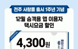 완주군 클릭뉴스2024. 12.03[클릭뉴스]2024년 새해 첫날 출시된 전주형 택시호출앱 ‘전주사랑콜’이 출시 1주년을 앞두고 고객 감사 이벤트를 연다. 전주시는 ‘전주사랑콜’ 출시 1주년을 맞아 고객 감사 이벤트와 설문조사를 실시한다고 3일 밝혔다. 전주사랑콜은 대형 호출 플랫폼의 수수료 부담 등을 이유로 플랫폼에 가입하지 못한 택시 운수종사자를 지원해 택시업계 전반의 균형 있는 상생발전을 도모하고, 시민들의 선택권을 확대하기 위해 올해 1월 1일 출시됐다. 이에 전주사랑콜은 1주년 고객 감사 이벤트로 12월 중 1회 이상 앱을 이용한 고객 5000명…