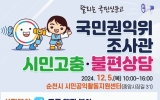 순천시 클릭뉴스2024. 12.03[클릭뉴스]순천시는 오는 5일 10시부터 16시까지 순천시 시민공익활동지원센터(순천시 중앙시장길 31)에서 국민권익위원회 ‘달리는 국민신문고’를 운영한다고 전했다. ‘달리는 국민신문고’는 국민권익위원회가 주관하는 프로그램으로, 시민들이 공공 서비스와 관련된 다양한 불편 사항을 직접 상담하고 해결할 수 있는 자리이다. 이번 행사에서는 권익위 조사관과 전문가 20여 명이 참여해 행정, 교육, 보훈, 세무, 복지, 노동, 건축 등 공공 서비스뿐만 아니라 소비자 피해, 지적 분쟁, 신용 회복, 민․형사 생활법률 등 생활 속 다양한 문…