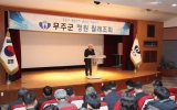 [클릭뉴스]무주군은 지난 2일 무주군민의 집 대강당에서 2024년의 마지막 월례조회를 개최했다. 이날 월례조회는 황인홍 군수를 비롯 무주군 실・과・읍・면 공무원 등 200여 명이 참석한 가운데 ‘인구변화의 이해와 미래 준비’를 주제로 직장교육 등이 진행됐다. 황인홍 군수는 “한 해 동안 행정 신뢰성을 높이기 위한 공직자들의 헌신적이고 슬기로운 대처에 감사드린다”며 “차질없는 사업 마무리 잘하고 새해를 기약하는 희망의 달이 되기를 바란다”고 전했다. 이외에도 황 군수는 예측하기 어려운 이상기후가 일상화됨에 따라 군민 안전을 위…