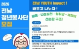 강진군 클릭뉴스2026. 03.13[클릭뉴스]강진군이 지역 사회에 활력을 불어넣고 청년의 사회참여 기회를 확대하기 위해 ‘전남 청년봉사단’을 오는 20일까지 모집한다. 이번 청년봉사단은 다양한 사회공헌 활동을 통해 지역 문제 해결에 참여하고, 청년들이 공동체 속에서 경험과 역량을 키울 수 있도록 마련된 프로그램이다. 모집 대상은 봉사활동에 관심이 있는 19~49세 청년으로, 지역 사회에 긍정적인 변화를 만들어가고 싶은 청년이라면 누구나 참여할 수 있다. 선발된 청년봉사단은 교육수강반과 재능기부반으로 나뉘어 활동한다. 교육수강반은 이‧미용, 바느질, 집수리…
