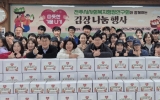 전주시 클릭뉴스2024. 12.01[클릭뉴스]전주시 사회복지공무원들로 구성된 전주시 사회복지행정연구회는 30일 회원 50여 명이 참여한 가운데 김장 나눔 봉사활동을 펼쳤다. 전주시 사행연은 전주시 사회복지공무원들이 모여 친목과 정보교류를 통해 복지전문가 자질을 함양하고 지역복지 발전에 기여하고자 1991년에 결성한 단체이다. 이번 김장 나눔 행사는 사회적 돌봄이 필요한 저소득 독거가구의 따뜻한 겨울나기를 돕기 위해 마련된 것으로, 회원들이 정성껏 담은 김장김치 500㎏는 자립준비청년 20세대와 ‘함께라면’ 카페 6곳에 전달됐다. 이날 행사에 참여한 한 회원은 …