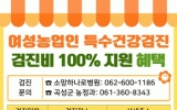 곡성군 클릭뉴스2026. 03.12[클릭뉴스] 전남 곡성군이 농작업으로 인한 직업성 질환 예방과 여성농업인의 건강 증진을 위해‘여성농업인 특수건강검진 사업’을 오는 17일까지 추진한다고 12일 밝혔다. 이번 사업은 정부와 지자체가 함께 지원하며, 만 51세부터 80세까지의 사이의 여성농업인 중 짝수년도 출생자(1946.1.1.~1975.12.31.)가 대상이다. 검진은 읍·면별 거점 장소에서 오전 8시부터 12시까지 운영된다. 농촌 여건을 고려해 이동검진버스(소망하나로병원)를 활용한 현장 방문형 검진 방식으로 진행된다. 검진 항목으로는 근골격계,…