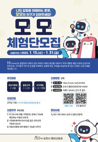 신청은 인터넷, 전화, QR코드 접속으로 가능하며, 순천시청 또는 순천로봇교육과학관 누리집에서 모집 요강을 확인할 수 있다.