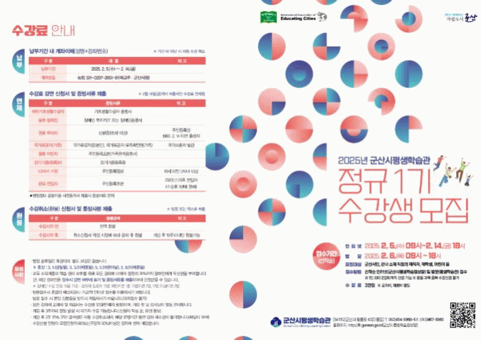 박홍순 교육지원과장은 “2025년 새해를 맞이하여 시작하는 평생학습을 통해 학습의 즐거움과 성장의 기회를 제공하여 시민 누구나 즐기는 평생학습도시 군산을 만들어가는데 앞장서겠다.”라고 말했다.