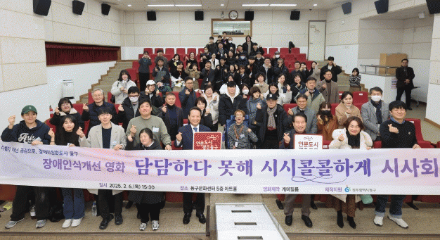 이날 시사회는 장애와 비장애를 넘어 다름에 대한 공감과 이해를 확산하기 위해 마련됐으며, 임택 구청장과 문선화 동구의회 의장을 비롯해 지역 장애인 단체 관계자들이 참석했다. 또한 정광식 감독(개미필름)과 출연 배우들이 무대에 올라 관객들에게 감사 인사를 전하며 특별한 시간을 가졌다.