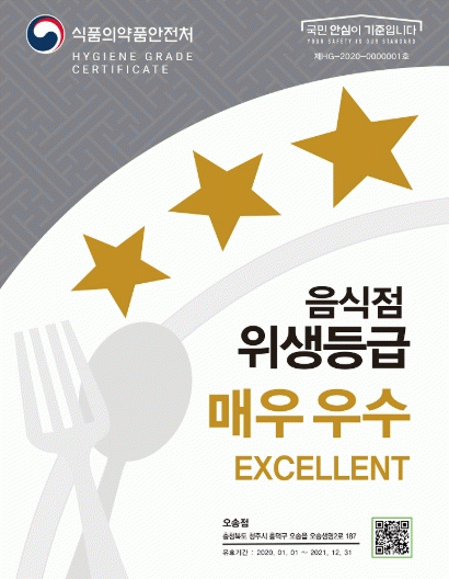 ‘음식점 위생등급제’는 식품의약품안전처에서 주관하는 것으로 음식점 위생관리 수준 등을 평가하여 등급(매우우수, 우수, 좋음)을 지정하는 제도이다.