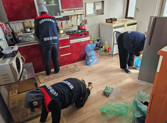 봉사단원들은 어르신이 혼자 생활하면서 정리하지 못한 생활 쓰레기를 치우고, 집안 곳곳을 대청소하며 쾌적한 환경을 조성했다.