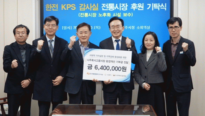 윤병태 나주시장은 “한전KPS 감사실의 따뜻한 나눔 실천에 깊이 감사드린다”며 “이번 기탁을 통해 시민들이 더 편리하고 안전하게 전통시장을 이용할 수 있는 환경을 조성하겠다”고 전했다.