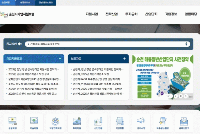 시 관계자는 “기업지원포털을 통해 기업의 애로사항 원스톱 처리와 소통을 활성화할 계획”이며, “앞으로도 지역 기업이 성장할 수 있도록 기업 맞춤형 지원 정책을 적극 발굴하여, 기업하기 좋은 도시 순천을 만들겠다”고 밝혔다.