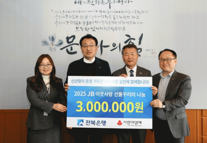 한편, 전북은행은 지속적으로 지역사회에 기여하는 다양한 사회공헌 활동을 통해 금융기관으로서의 사회적 책임을 실천하고 있으며 지역 주민들과 상생하며 따뜻한 나눔 문화를 확산해 나갈 계획이다.
