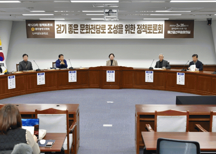 좌장을 맡은 박미정 의원은 “문화전당로가 걷기 좋은 길 조성의 좋은 선례가 되기 위해서는 주변 상인·주민과 공감대 형성이 필수적이다.” 고 했다.