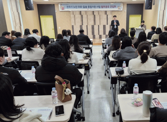 이금안 전주시 노인복지과장은 “전달 중심의 교육보다는 자유로운 의견 교환과 상호 교류 확대를 통해 유연하고 역동적인 사업체계를 구축할 수 있도록 끊임없이 만나고 소통할 계획”이라며 “통합지원 추진체계가 견고해질수록 시민의 복지향상에 기여될 것”이라고 말했다.